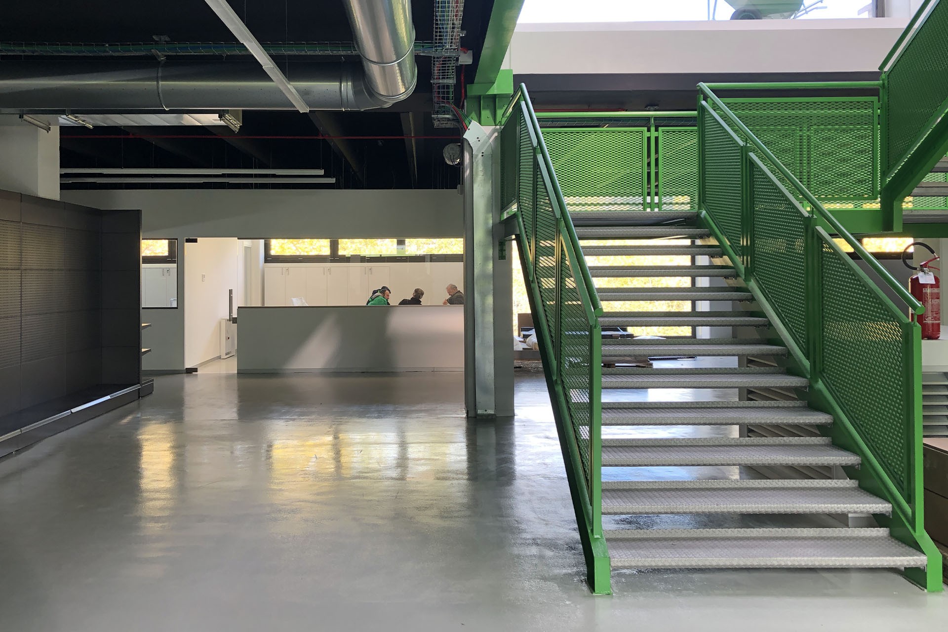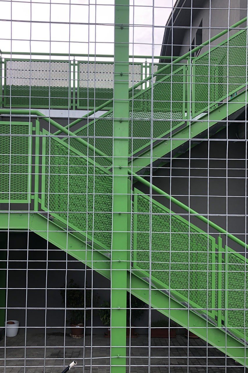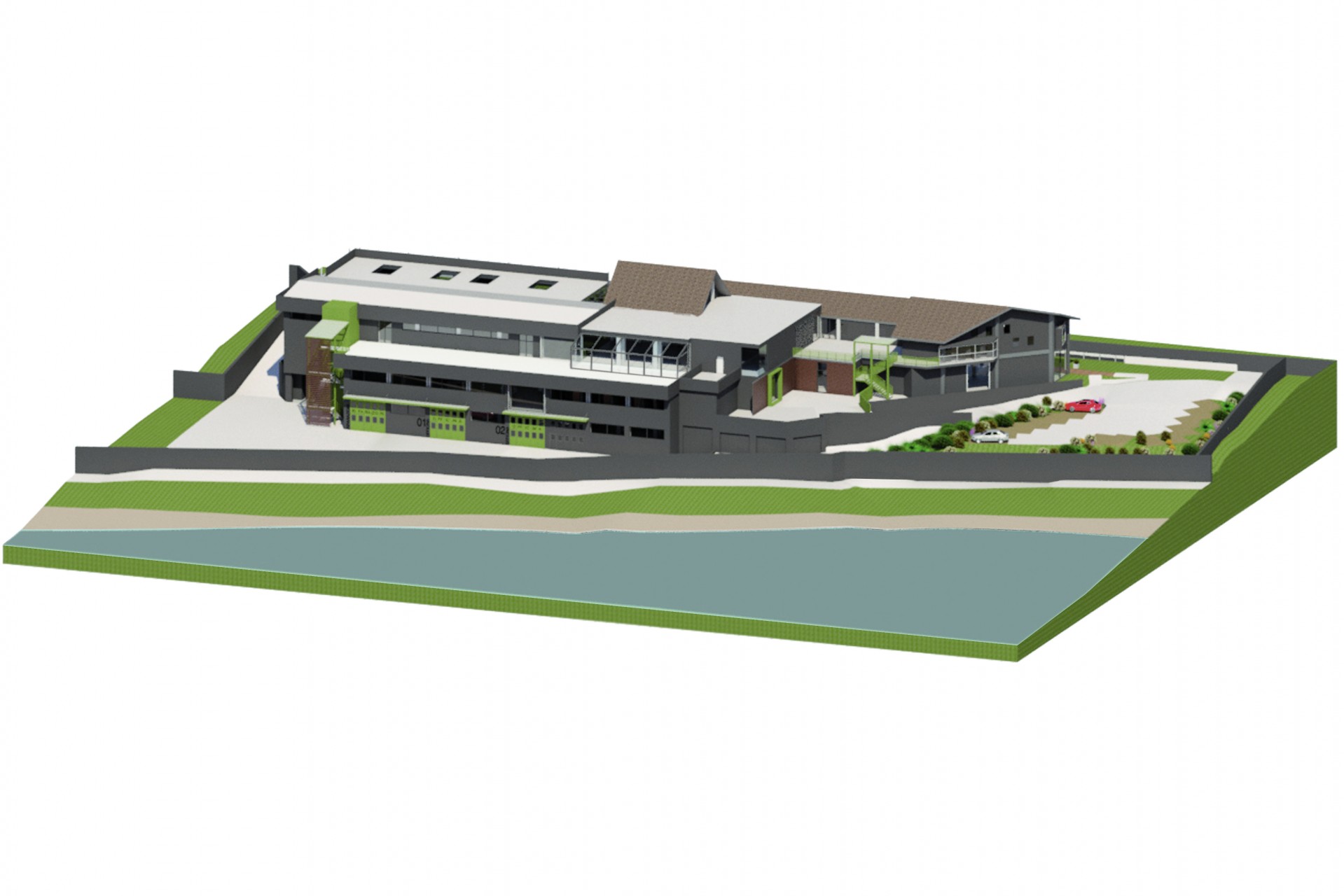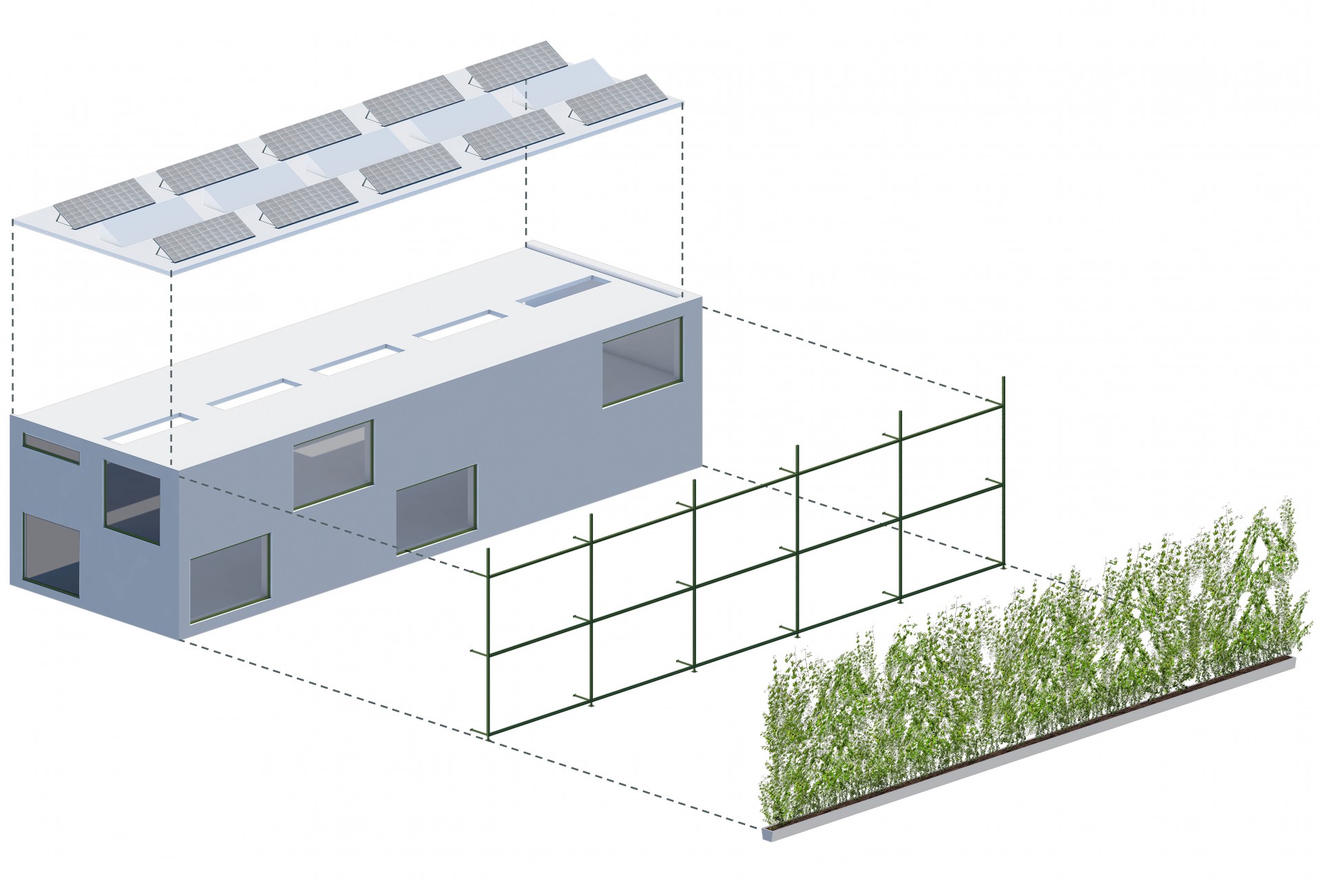 Il landmark rappresentato dalla quinta verde alta 7 m e lunga 30 m che si pone lungo la strada regionale a sud diventa l’ideale manifesto della nuova filosofia aziendale.