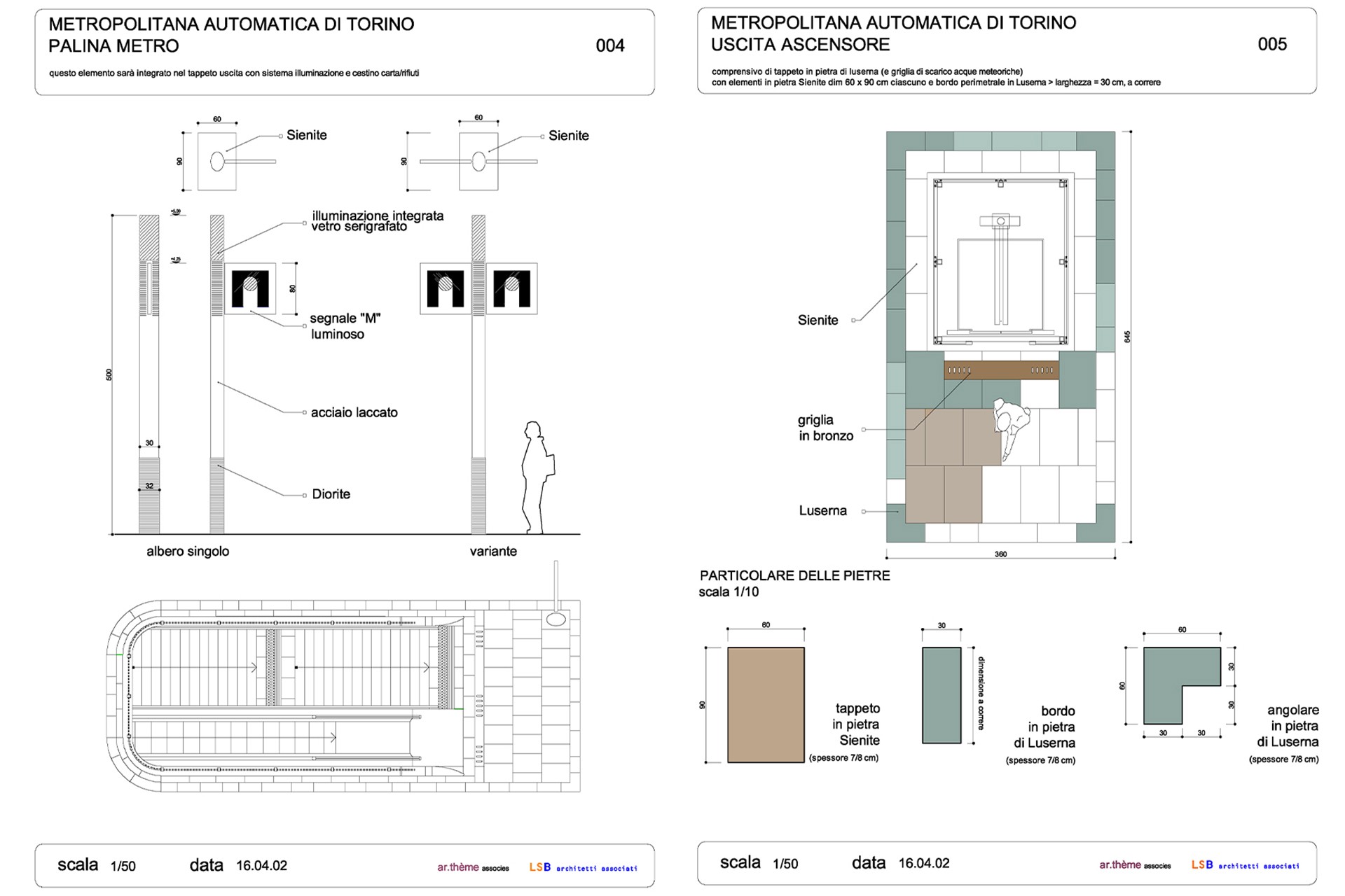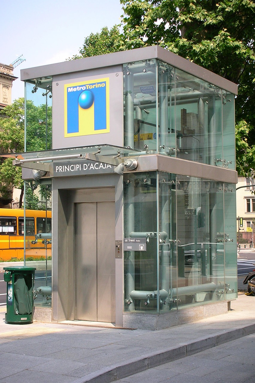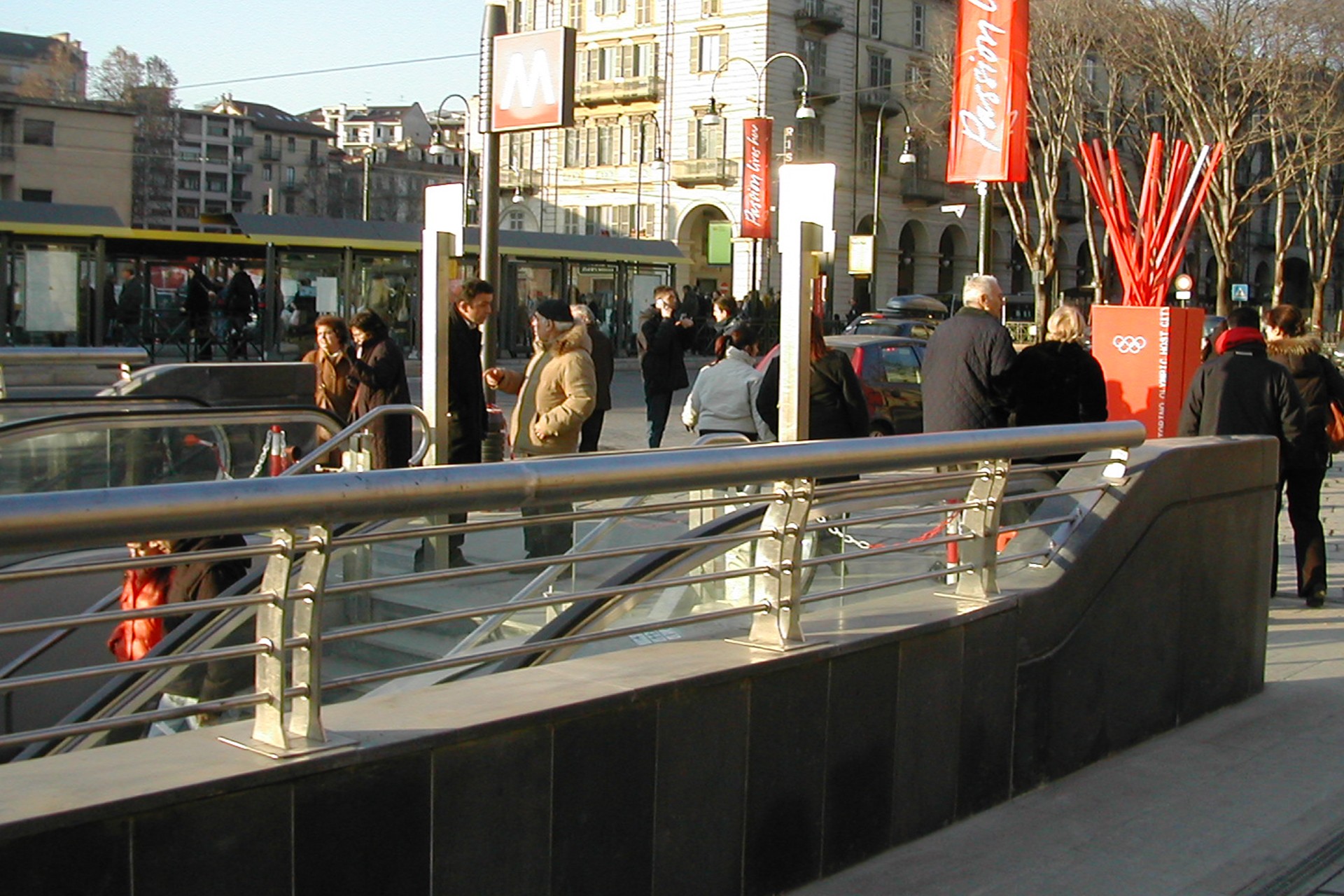 Il progetto degli accessi e delle sistemazioni superficiaI relative alla linea 1 della metropolitana automatica di Torino riguarda le aree di pertinenza delle stazioni, l’inserimento delle uscite rispetto ai flussi pedonali, il design degli apparati tecnologici in superficie afferenti le stazioni diventano elemento imprescindibile di relazione tra le opere in sotterranea e la città esistente; particolare attenzione e’ stata rivolta alla qualità del disegno urbano e alla sicurezza dei pedoni. La stesura del progetto avviene tramite la redazione di un vocabolario (una sorta di abaco di riferimento) all’interno del quale i numerosi elementi architettonici vengono classificati, strutturati, descritti e attraverso il quale i materiali e i dettagli vengono volta per volta declinati e adattati alle diverse situazioni del contesto urbano interessato. La Linea 1 della metropolitana GTT è il primo sistema di trasporto pubblico d’Italia basato sul sistema a guida automatica VAL.