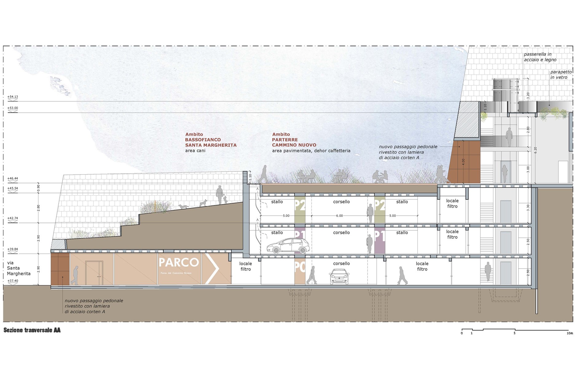 Il parcheggio multipiano del Cammino Nuovo si inserisce nel “Sistema coordinato di parcheggi di interscambio nel centro storico - Parco del Cammino Nuovo” predisposto dall’amministrazione comunale cagliaritana in vista della candidatura quale città italiana Capitale Europea della Cultura 2019. Il sito oggetto dell’intervento si presenta oggi come un’area destinata a parcheggio a raso racchiusa tra i due quartieri storici di Stampace e Castello.