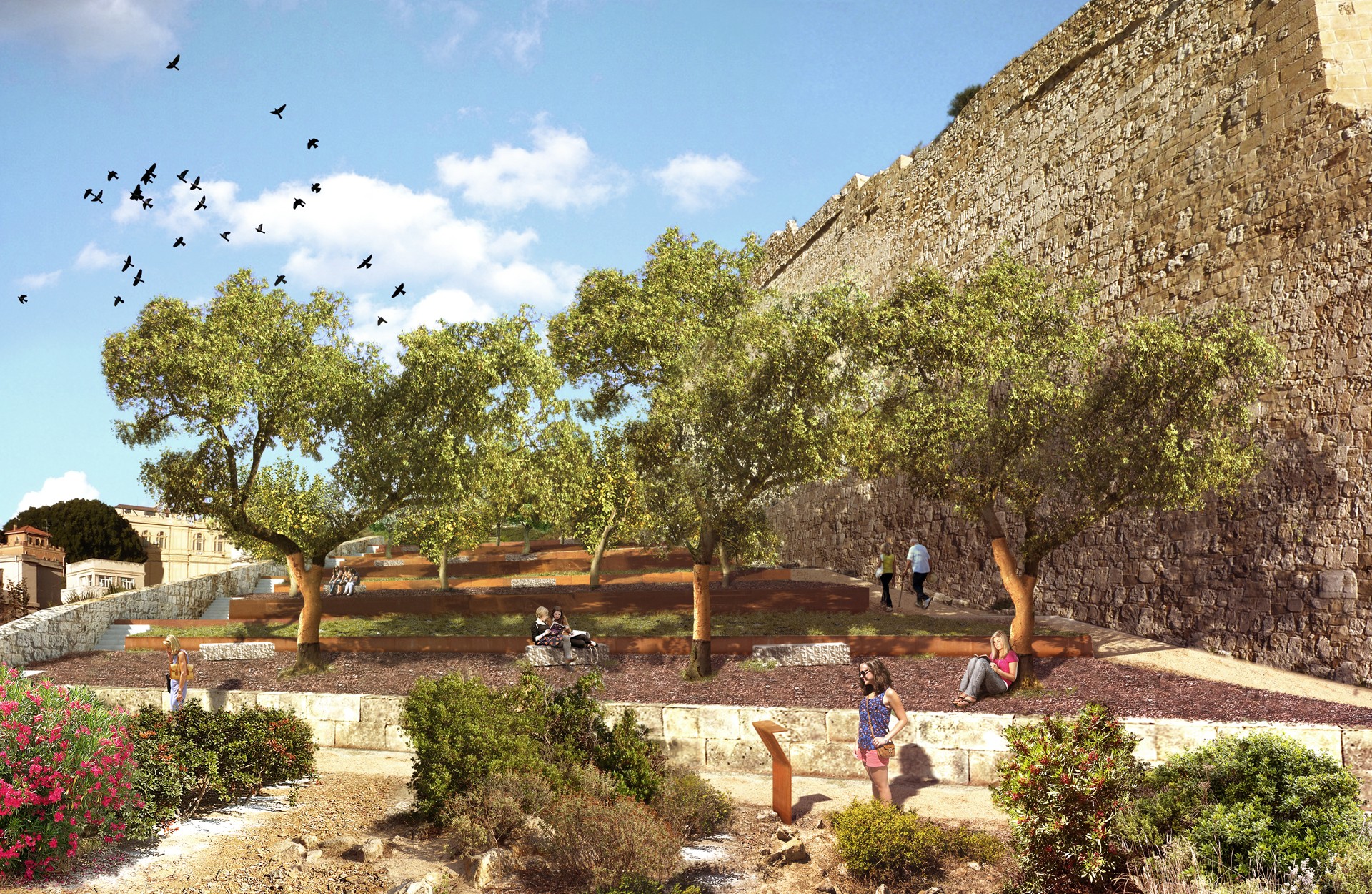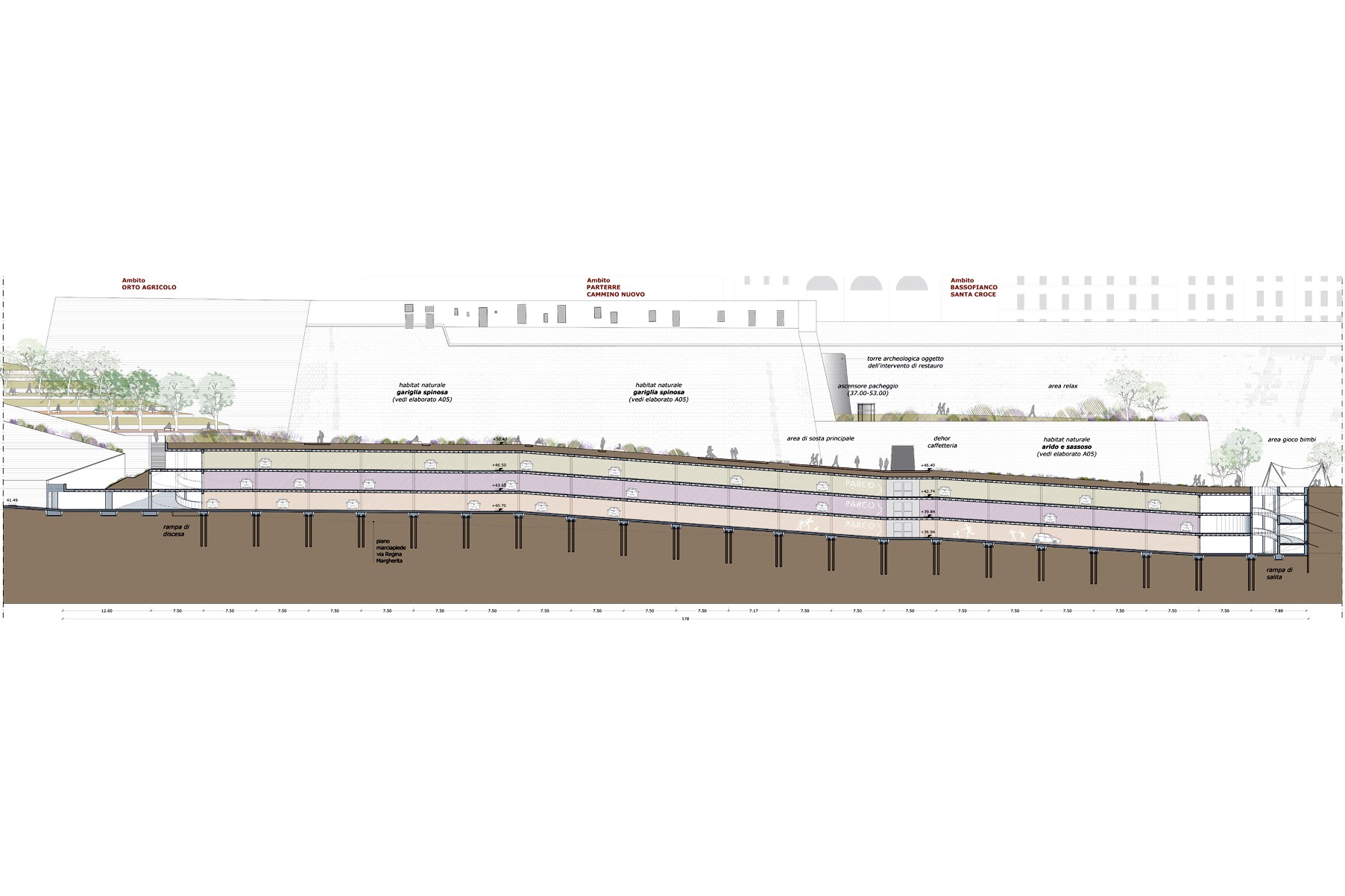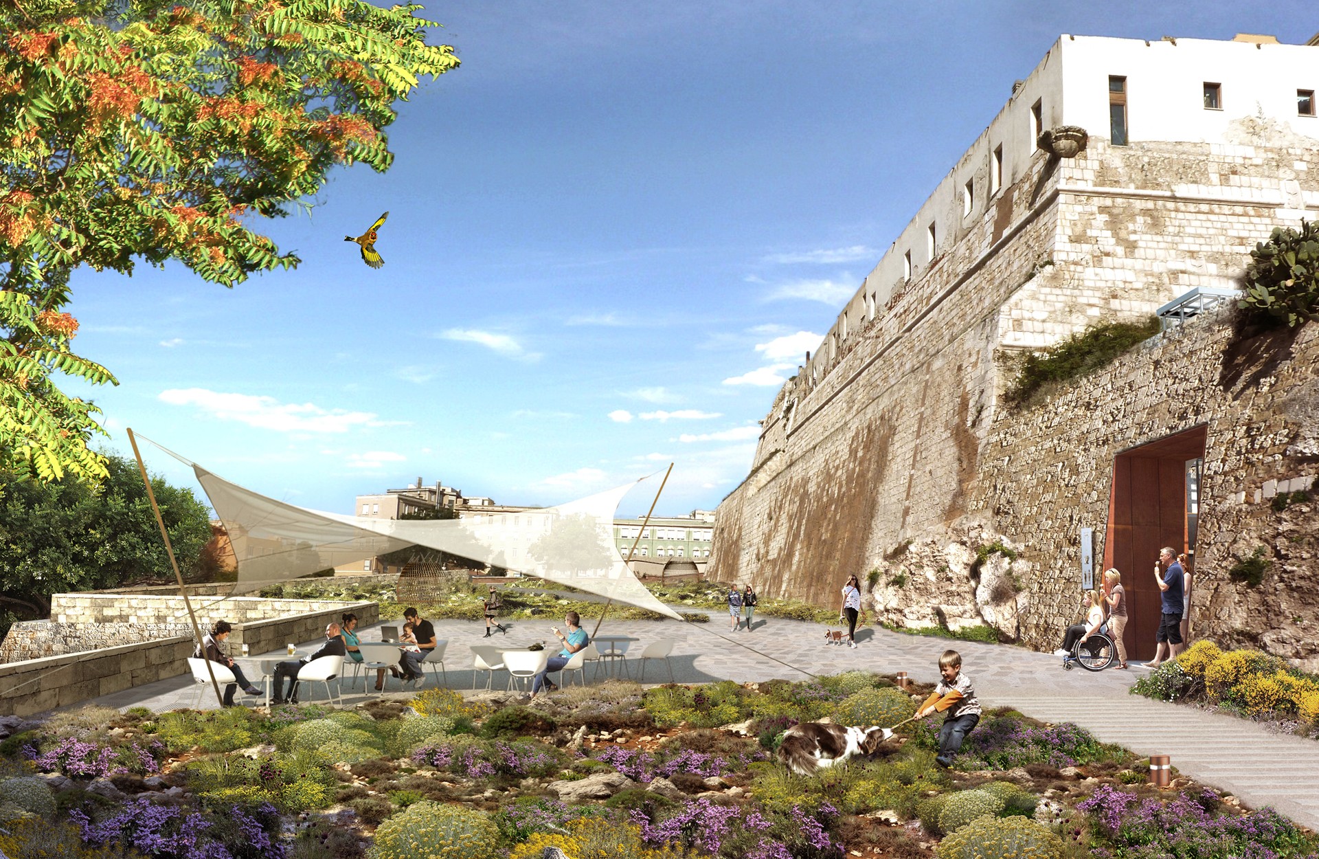 Il progetto prevede la realizzazione di tre piani di parcheggio che potranno ospitare circa 340 posti auto con la conseguente liberazione dello spazio a cielo aperto, attualmente occupato dagli autoveicoli, che potrà dare vita a un nuovo parco naturalistico urbano. Grazie all’interramento delle auto, si restituirà al sito un’opportuna e legittima naturalità, ricercando un equilibrio tra le preesistenze storico-culturali: un luogo che presenterà per molti versi un’alta valenza naturalistica perché in grado di connettere da un punto di vista ecologico i “polmoni verdi” urbani rappresentati dell’orto botanico e dai giardini pubblici di Cagliari in un unico sistema verde. L’area in questione quindi dovrà ridefinire la relazione di mutua convivenza fra le parti di centro storico che attualmente sembrano non rispondere adeguatamente alle logiche di una corretta pianificazione paesaggistica e ambientale. A livello architettonico il parcheggio si presenta come una sorta di “hub” della mobilità e dovrà garantire nella sua gestione “evoluta” nuovi sistemi di cortesia offerti alla cittadinanza e ai turisti come ad esempio il sistema del “car valet” che può essere di valido aiuto alle fasce deboli di utenti (disabili, anziani, mamme con bambini).