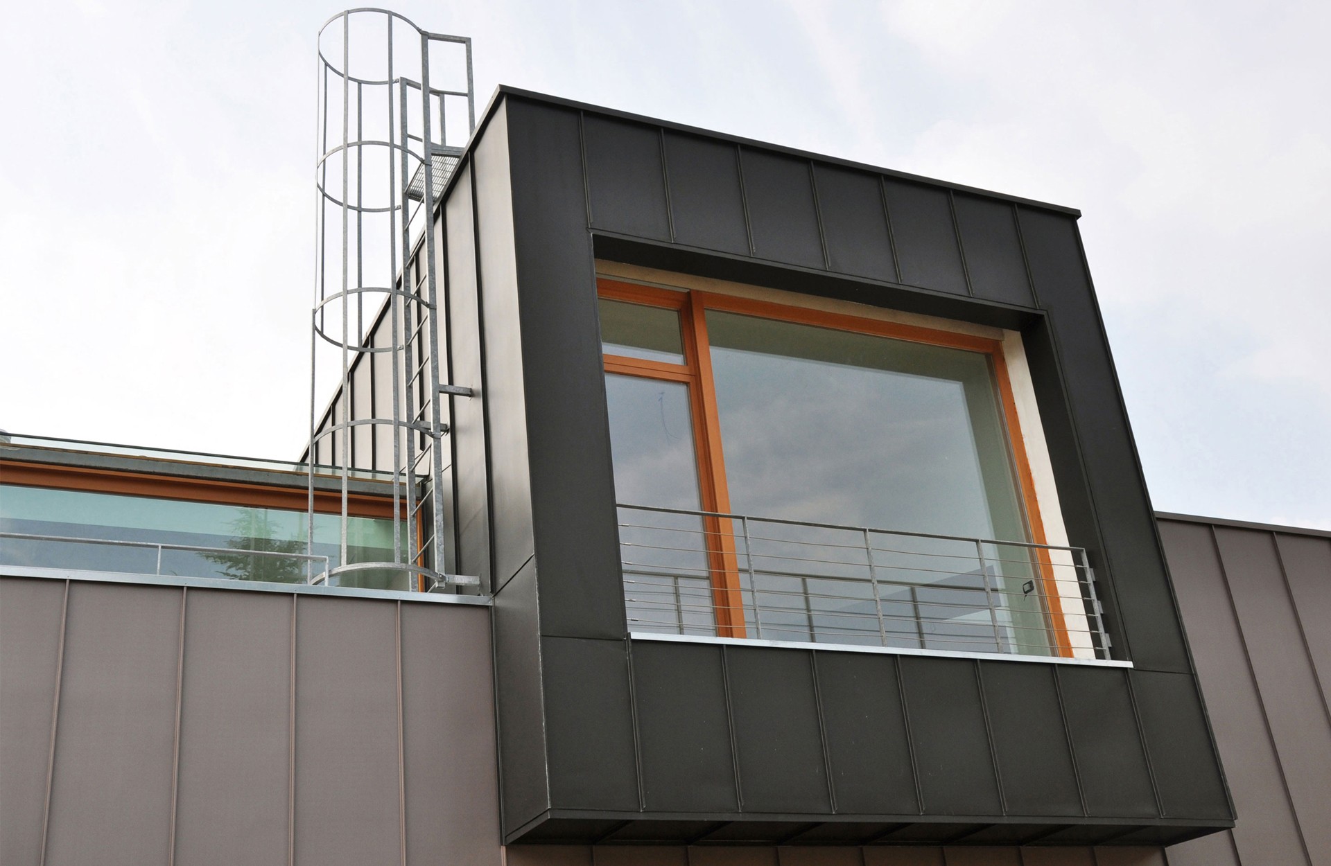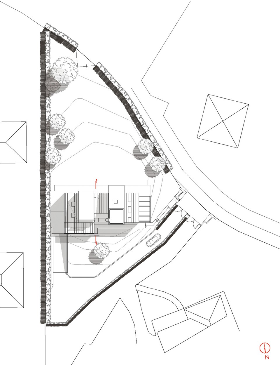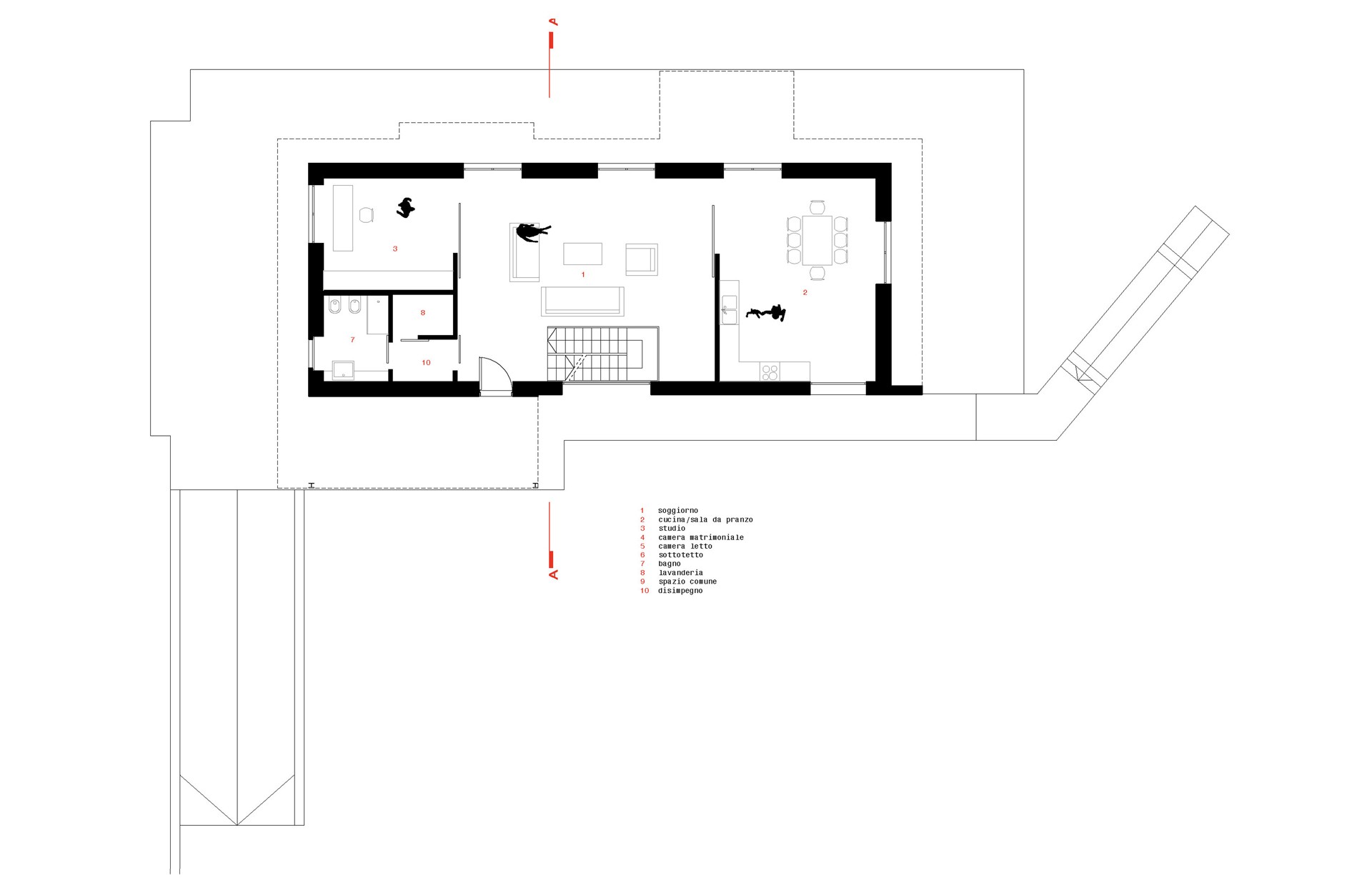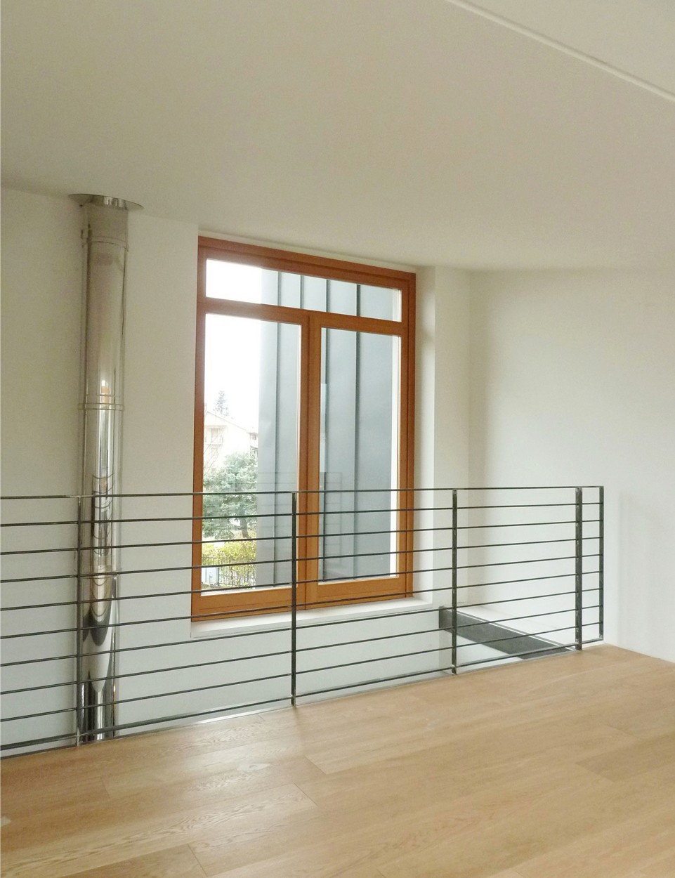 L’edificio è immerso nel parco Regionale della Mandria, a poca distanza dalla Reggia di Venaria Reale e si sviluppa su due livelli fuori terra di cui il piano terreno destinato alla zona giorno e il primo alle camere da letto e le zone studio più un piano interrato che ospita un’autorimessa-officina. I volumi sono caratterizzati da un corpo principale in muratura intonacata su cui si “posa” una scocca di zinco color terra che riveste il lato nord e parte della copertura. Al piano superiore due volumi di zinco color antracite si protendono verso il territorio per mezzo di grandi finestrature. Tutti gli spazi sono progettati in modo da ridurre al minimo gli affacci sui lotti confinanti, ma al contempo sono studiati per favorire la relazione tra interno ed esterno e la percezione del verde, del giardino al piano terreno e del territorio dal primo piano. Si è cercato un “dialogo ideale” con due opere di grande valore presenti nelle immediate vicinanze. La prima è la “Bizzarria”, casino di caccia della famiglia Savoia, a poche centinaia di metri dalla villa, che si pone quale punto di avvistamento sul parco e che serviva anche da rifugio privato. La seconda si trova nel Comune di Pianezza ed è la sede degli uffici della società F.A.T.A., opera degli anni ’70 del maestro brasiliano Oscar Niemeyer.