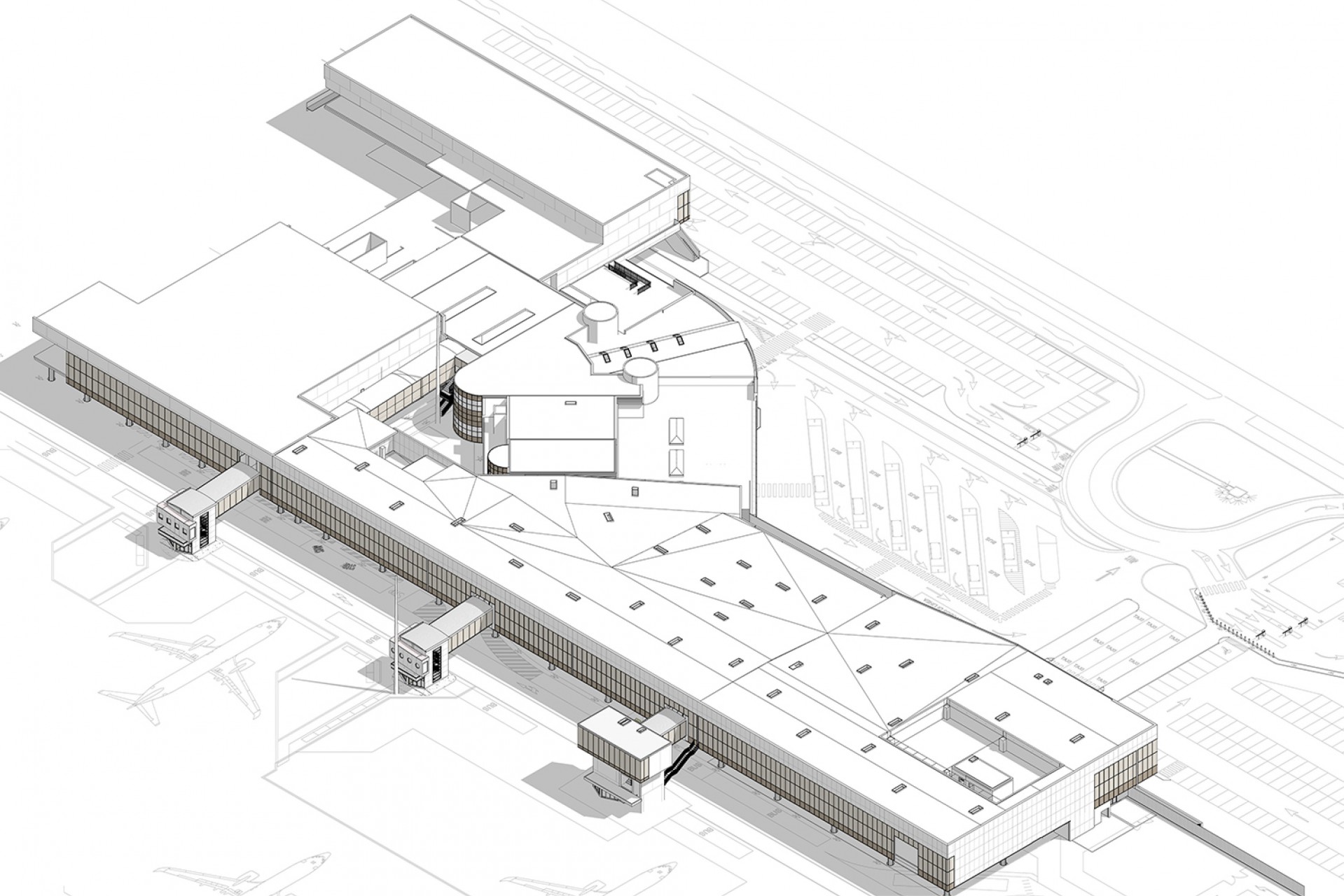 con l’ampliamento del 2010. Da un punto di vista generale, i temi su cui vertono i principali ambiti di intervento sono due: da un lato è stato necessario rifunzionalizzare e riqualificare l’area arrivi dell’aerostazione esistente (blocco 1 e 2) attraverso una migliore distribuzione degli spazi interni, dall’altro la necessità di ampliare alcune aree funzionali (blocco 3 e 4) che apparivano ormai insufficienti ad ospitare determinate funzioni sia in termini di superficie occupata sia in termini di livello di servizio garantito. L’attività progettuale è stata svolta con un processo di sviluppo, crescita e analisi di modelli multidimensionali virtuali generati in digitale attraverso l’applicazione della Building Information Modelling (BIM).