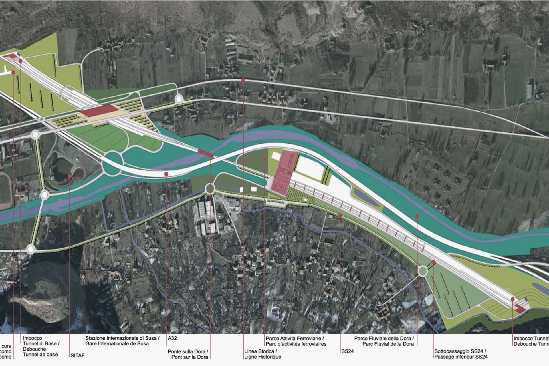 La stazione ferroviaria di Susa Est (internazionale) è concepita quale nodo intermodale all’intersezione della ferroviaria esistente Susa-Bussoleno (rete dei trasporti regionale) e le reti ferroviarie internazionali ad alta velocità.