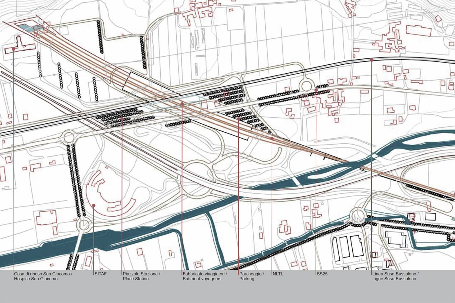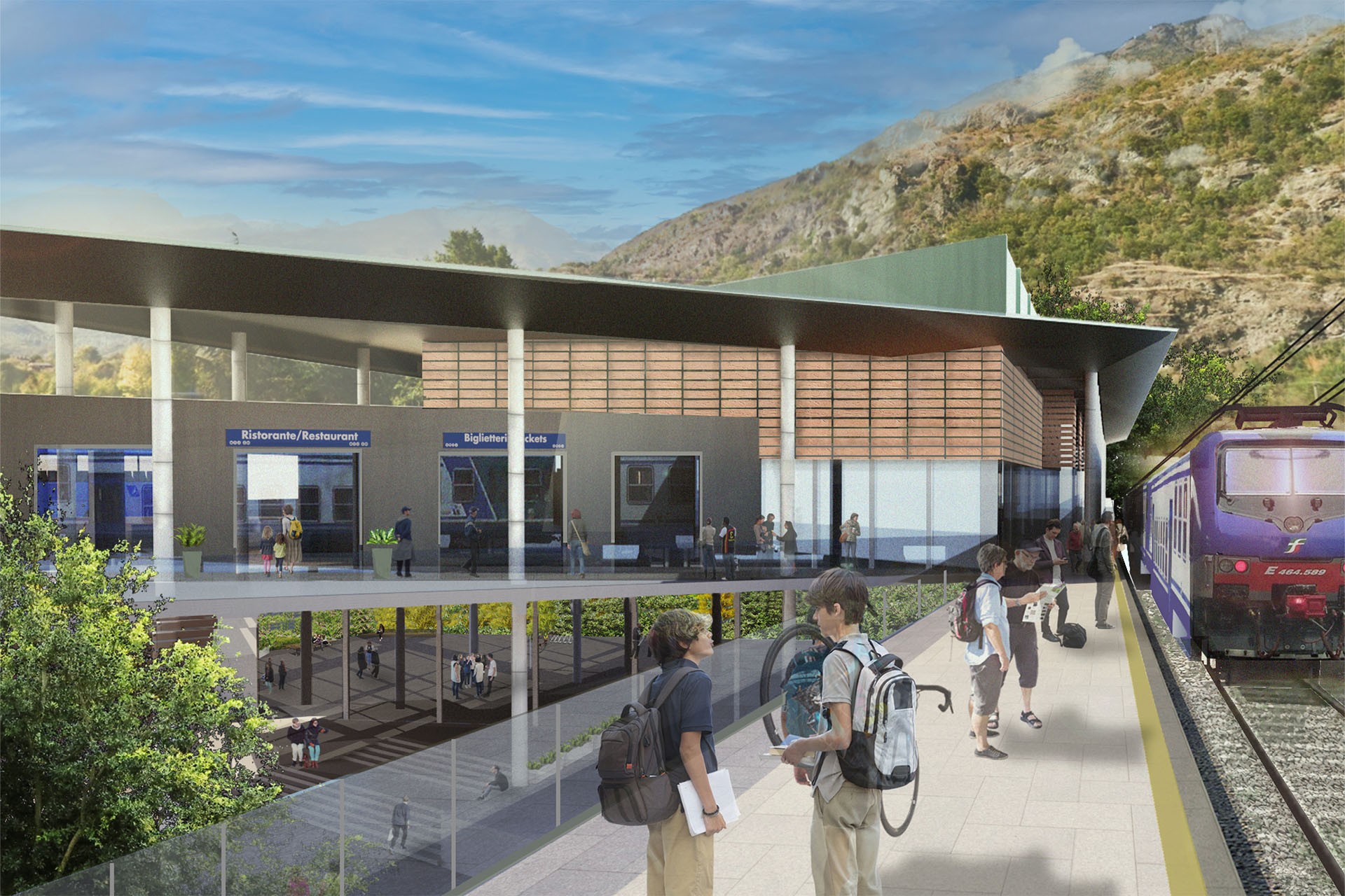 Il progetto di questa grande stazione, nuova “portacd’ingresso” in Italia dal quadrante nord-occidentale nazionale, riprende i principi architettonici della stazione di St. Jean de Maurienne, anche essa situata all’incrocio di due linee ferroviarie, una esistente e l’altra di nuova realizzazione, che diventa il nuovo sistema intermodale della valle della Maurienne.