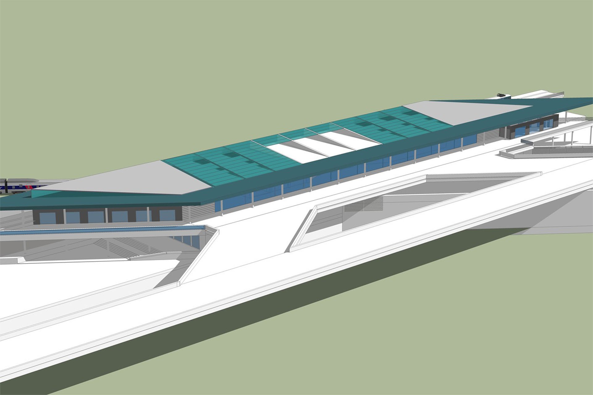 Le differenti funzioni della stazione si organizzano con i sistemi di controllo (passaporti e dogane) delle zone di accesso internazionale. La sua posizione e l’orientamento deve essere in grado di integrare dispositivi innovativi d’architettura di alta qualità ambientale (utilizzo di sistemi di produzione di energia da fonti alternative, risparmio energetico, controllo del confort degli ambienti e materiali con alte qualità ambientali nonchè prestazionali dei materiali impiegati).