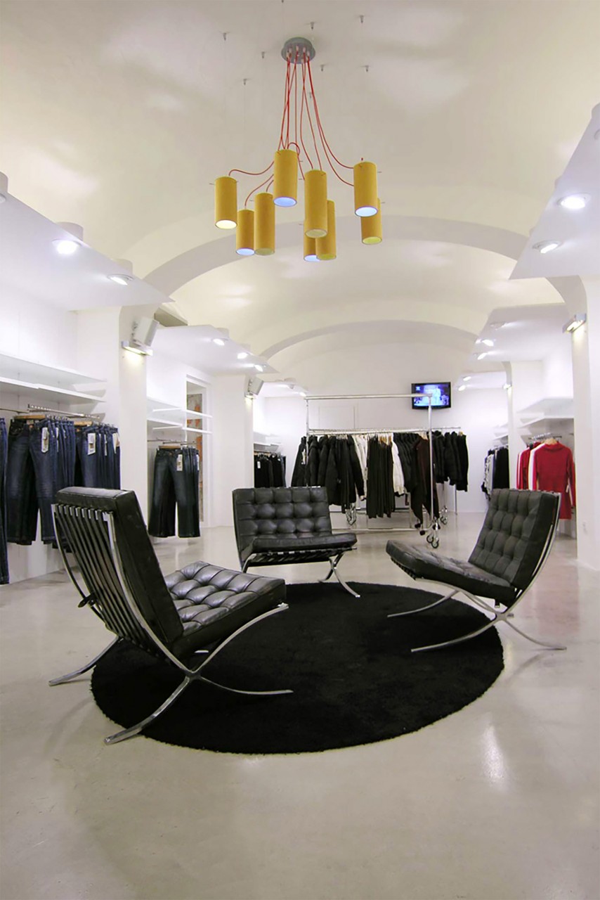 L’intero negozio, collocato in una galleria commerciale nel centro storico di Biella, in Via Italia diventa vetrina, palcoscenico per offrire una continua comunicazione interattiva al cliente e al passante. Un negozio estroverso, creativo, vivace, aggiornato, si pone come una piazza urbana, da animare con un tocco trasgressivo. La presenza decontestualizzata di un albero all’interno dello spazio vendita si pone quale archetipo ed emblema di un nuovo imprescindibile atteggiamento da parte dell’uomo verso la natura e allo stesso tempo ne testimonia la forza e la bellezza.