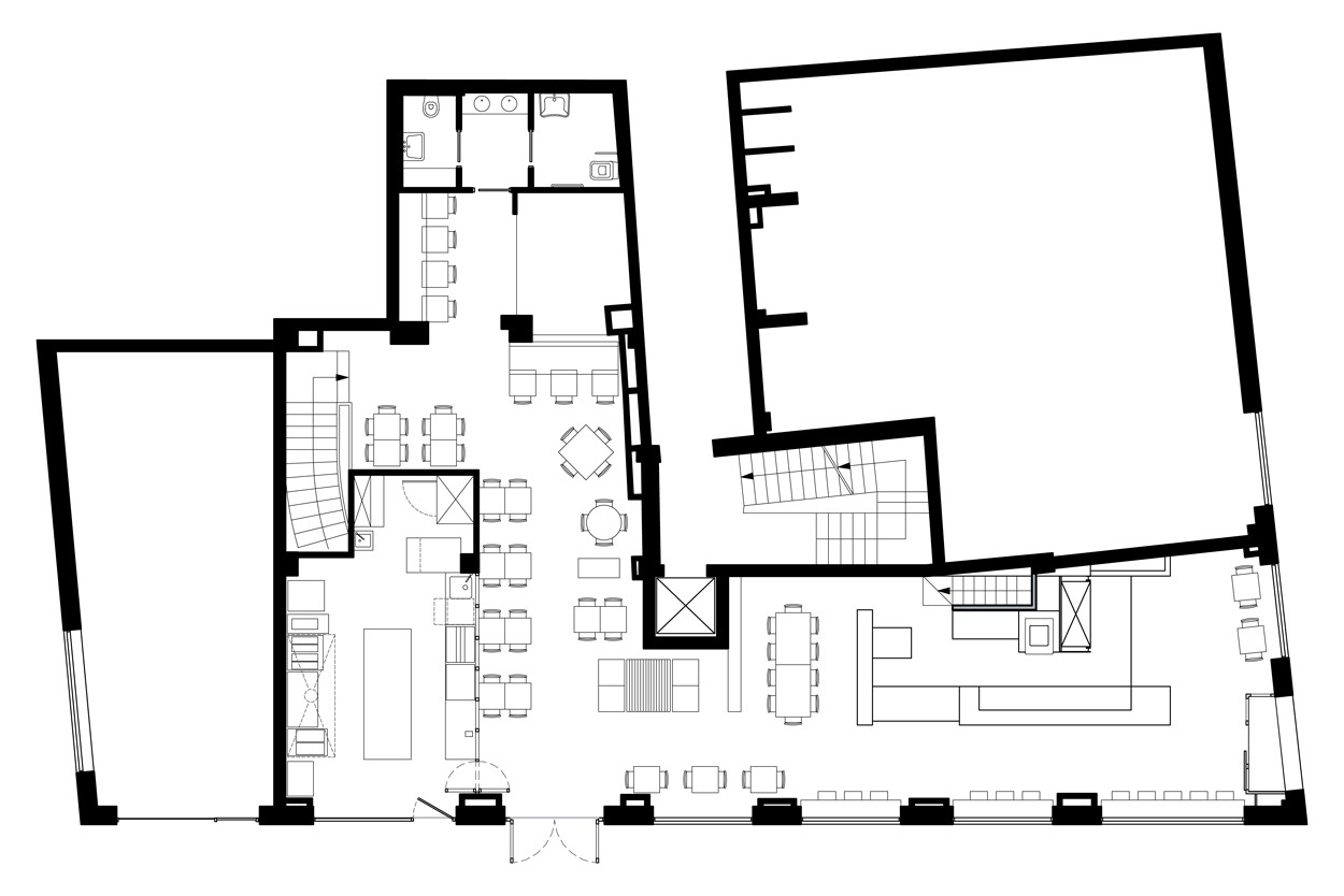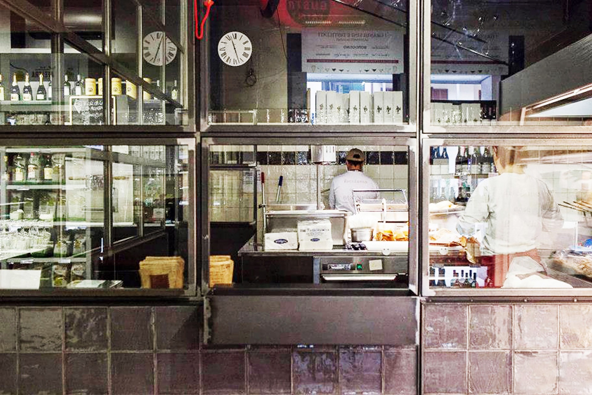 Gli stessi principi sono stati da noi declinati durante la stesura del manuale di corporate identity che guida la progettazione dei locali, i quali nell’atmosfera e nei materiali off rono al cliente un’esperienza di qualità a 360 gradi. Il progetto si ispira all’essenza degli edifi ci industriali e dei laboratori di produzione. Gli impianti a vista, il ferro naturale, gli intonaci ed i mattoni preesistenti evidenziano questo approccio informale che viene ulteriormente enfatizzato dalla cucina a vista e dall’organizzazione degli spazi che favorisce la convivialità.