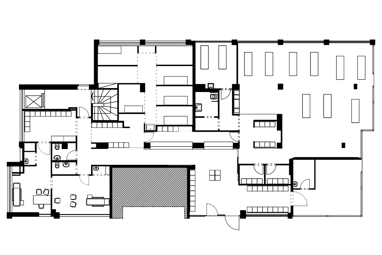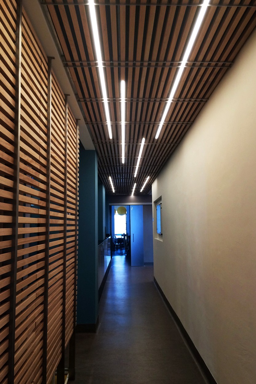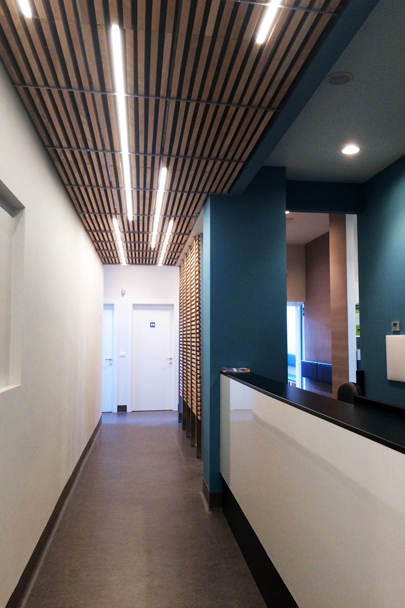 Una sfida ai limiti dell'azzardo: ristrutturare completamente lo storico centro fisioterapico Stagno in tre settimane ad agosto. Il restyling ha riguardato la riorganizzazione del layout dei due piani della struttura per complessivi 500 mq., gli impianti e gli arredi. Si è lavorato intensamente su sistemi costruttivi e di assemblaggio a secco e sull'organizzazione del cantiere.