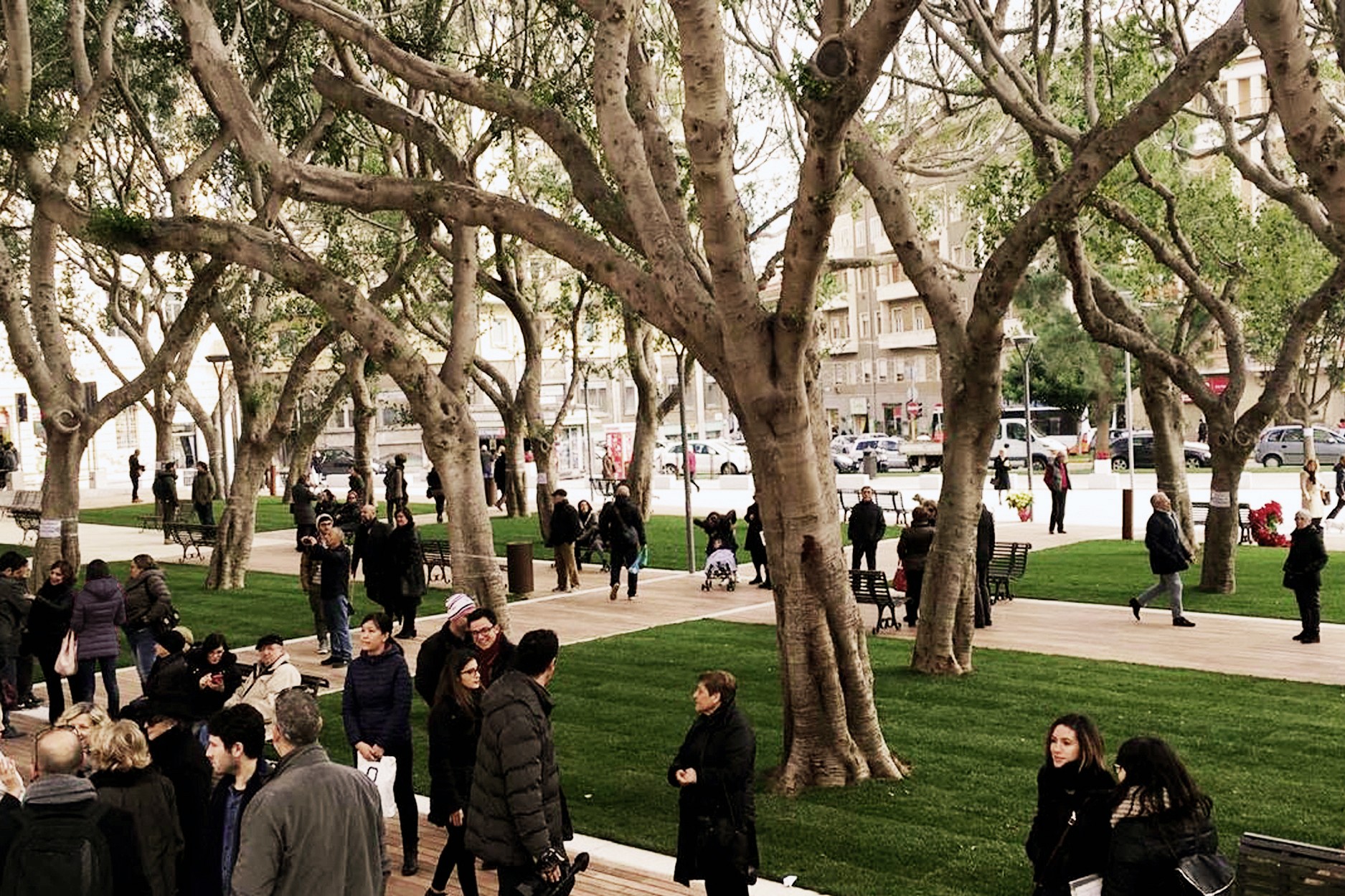 La nuova Piazza Garibaldi, terminata a fine 2017 è una grande area pedonale, la risultante di una visione urbana complessiva che esprime la convivenza delle diverse componenti preesistenti attraverso nuove relazioni e nuove forme di interazione urbana. Lo spazio è percorribile da tutti senza dislivelli né ostacoli: l’area a disposizione dei pedoni passa dagli attuali 4850 mq a 6700 mq e viene portata a livello della strada carrabile. La Piazza si colloca lungo uno dei principali assi viabilistici della città, Via Sonnino - Via Baccaredda, asse che collega in direzione nord-sud il lungomare e l’area nord del concentrico, i quartieri Marina, Villanova e Castello. Il sindaco Zedda spiega: “Sarà il cuore pulsante del rinnovato percorso del centro storico: è infatti snodo fondamentale dell’ampio intervento che coinvolge la via Garibaldi verso la via Paoli e, a ritroso, la via Manno e il Corso. Obiettivi sono la restituzione di uno spazio destinato a cittadini e turisti, il potenziamento del commercio cittadino, la tutela e la valorizzazione del verde e la promozione della mobilità sostenibile”.