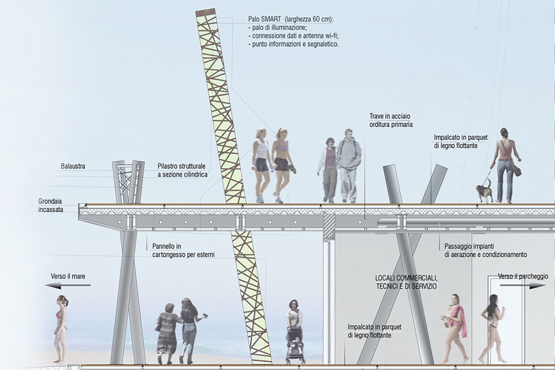 Il progetto di riqualificazione del Lungomare Rasi-Spinelli si sviluppa su una superficie di circa un chilometro e mezzo di lunghezza per 150 metri di profondità, ed è stato impostato