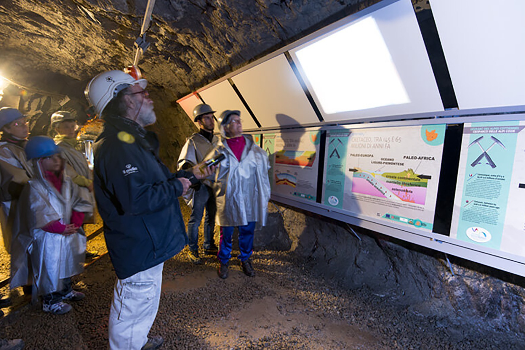 L’Ecomuseo Scopriminiera restituisce una nuova vita al sito minerario collocato nel comune di Prali e gestito dalla Comunità Montana Valli Chisone e Germanasca. Il percorso di visita in esterno si compone di diverse aree espositive e didattiche: l’esposizione “della comunità locale”, “dell’attività mineraria” e “della vita del minatore”, attraverso l’esposizione di abiti, attrezzi, macchinari ed oggetti. Il contesto di pregio ambientale all’interno del quale l’intervento è collocato ha richiesto una particolare attenzione e sensibilità progettuale sia alla scala paesaggistica che alla scala architettonica. Il museo è visitabile anche dai disabili motori e dai non vedenti tramite un percorso tattile ed un sistema di audioguide che adegua il percorso agli odierni standard espostivi a fruibilità totale degli spazi pubblici. Nel luglio 2013 è stato inaugurato l’allestimento di una nuova area espositiva all’interno della miniera “Gianna”, sul tema della geologia, visitabile per mezzo di un trenino elettrico. A quasi 2 Km di profondità è possibile vedere un “contatto tettonico”, testimonianza dello scontro avvenuto 65 milioni di anni fa tra le terre oggi corrispondenti all’Africa e all’Europa, che ha dato origine alla nascita delle Alpi.