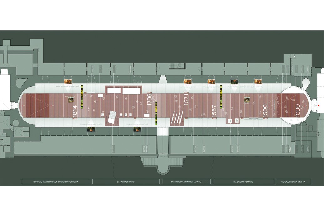 In occasione dell'apertura al pubblico della Reggia di Venaria Reale è stata inaugurata il 12 ottobre 2007 la mostra che racconta la storia della dinastia dei Savoia nell'epoca dell'edificazione della Reggia. Nella grande sala iniziale sono presentati quasi tutti gli elementi che caratterizzano l'allestimento del piano interrato: grandi pannelli, occasionalmente con terminale curvo, rivestiti di una rete metallica industriale che ricorda le armature. Nelle sale del piano superiore è l'architettura ad avere il ruolo di protagonista e quindi l'allestimento diventa molto più discreto, quasi rarefatto.