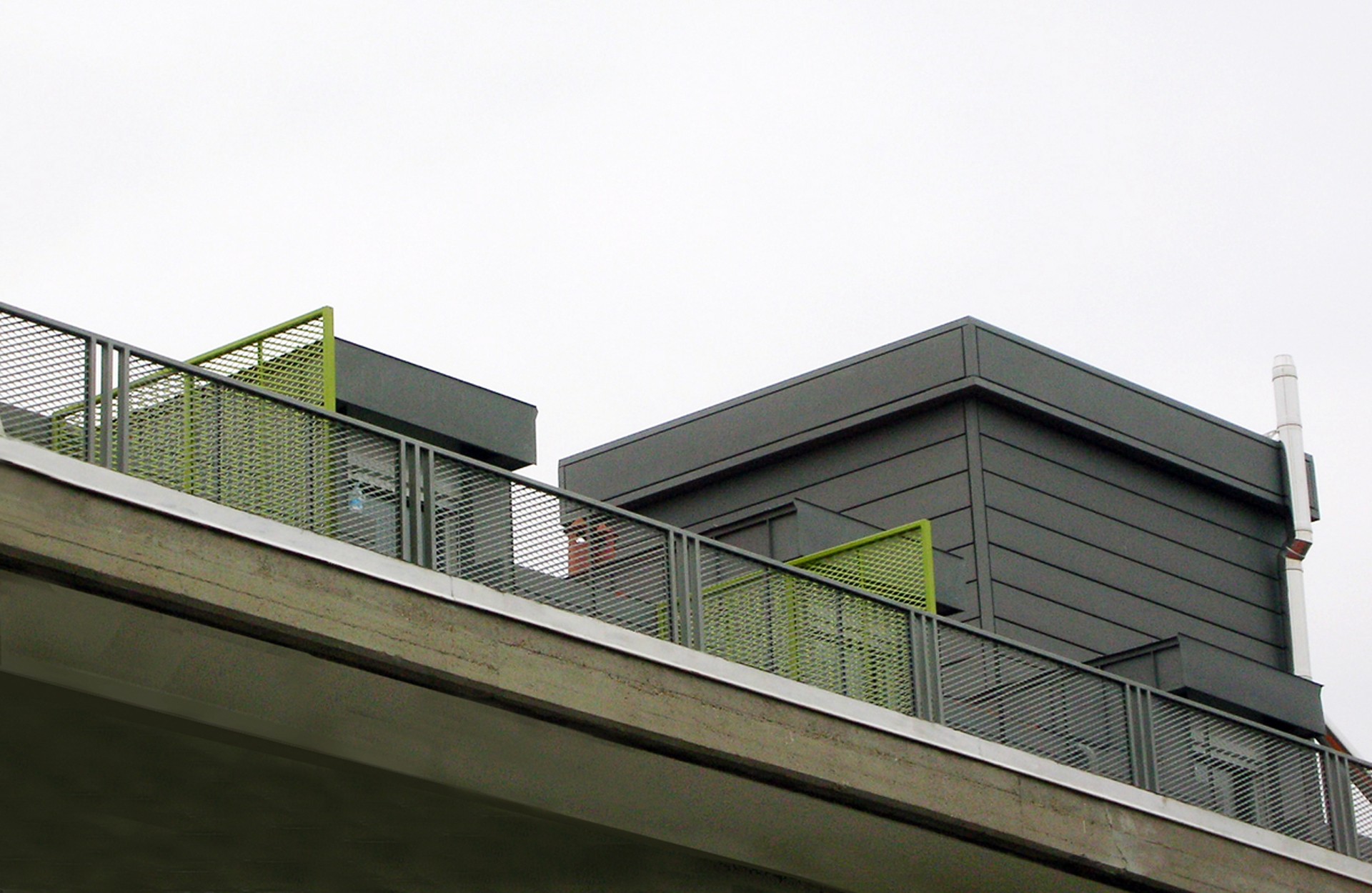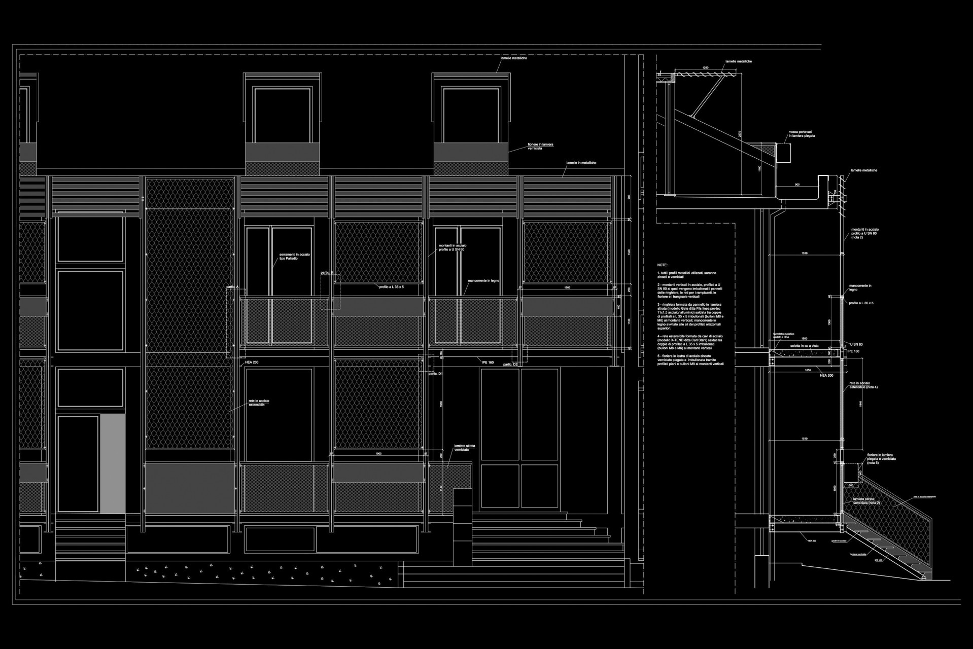 La conversione del mobilificio Grobbo da luogo di lavoro a destinazione residenziale ridefinisce la natura degli spazi e dei volumi e i loro rapporti tra interno ed esterno attraverso la sovrapposizione di una nuova “facciata verde”, diaframma di mediazione con il contesto naturale. Le scelte progettuali sono orientate secondo la massima sostenibilità (attenzione ai costi) ed ecosostenibilità (basso impatto ambientale). La costruzione esistente risalente agli anni settanta (cemento, intonaco, mattone) è integrata con nuove strutture sovrapposte e indipendenti (ferro, vetro, lamiere, reti metalliche, impianti tecnologici a vista) che mantengono il carattere industriale e commerciale originario dell ’edificio.