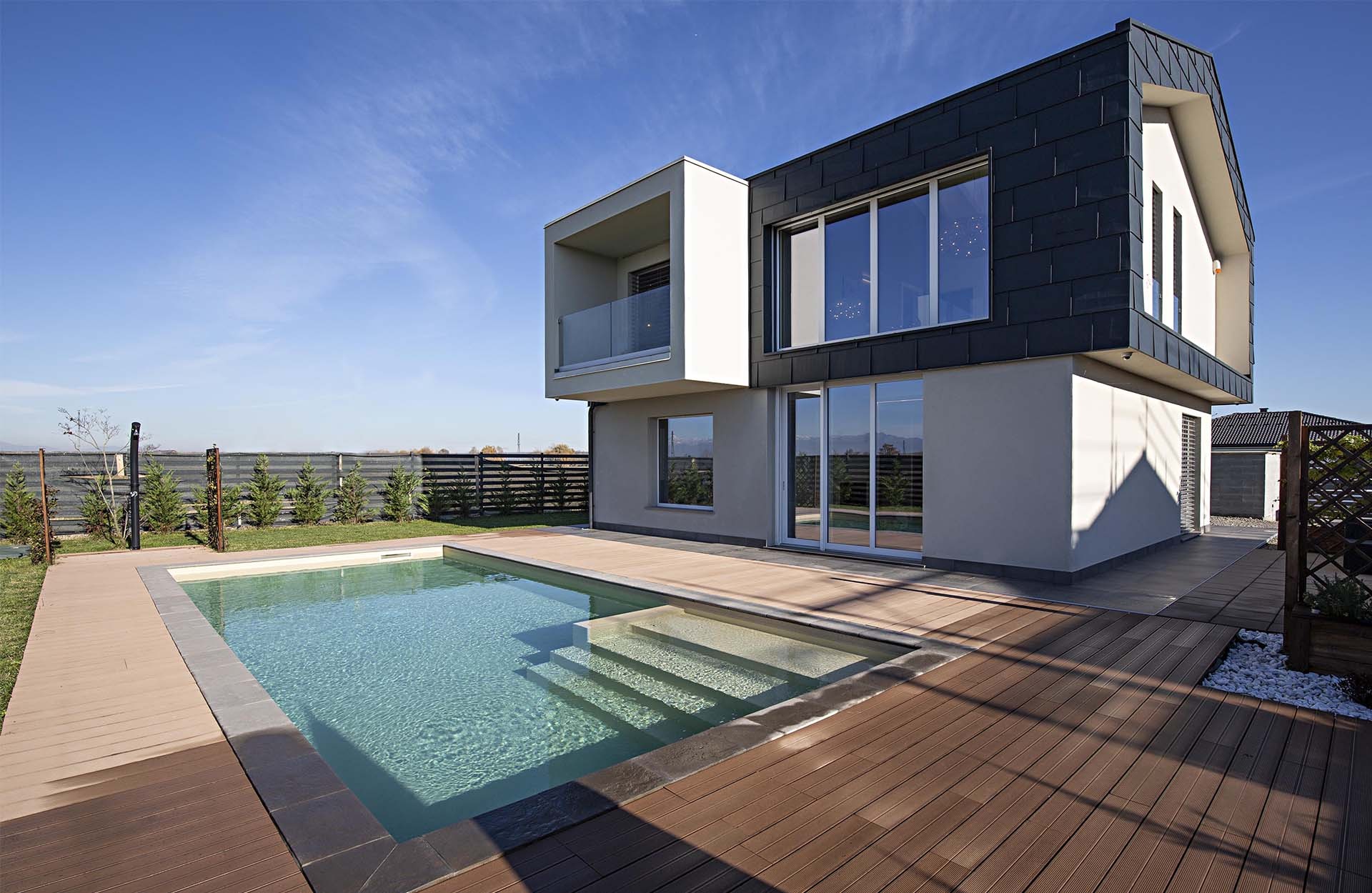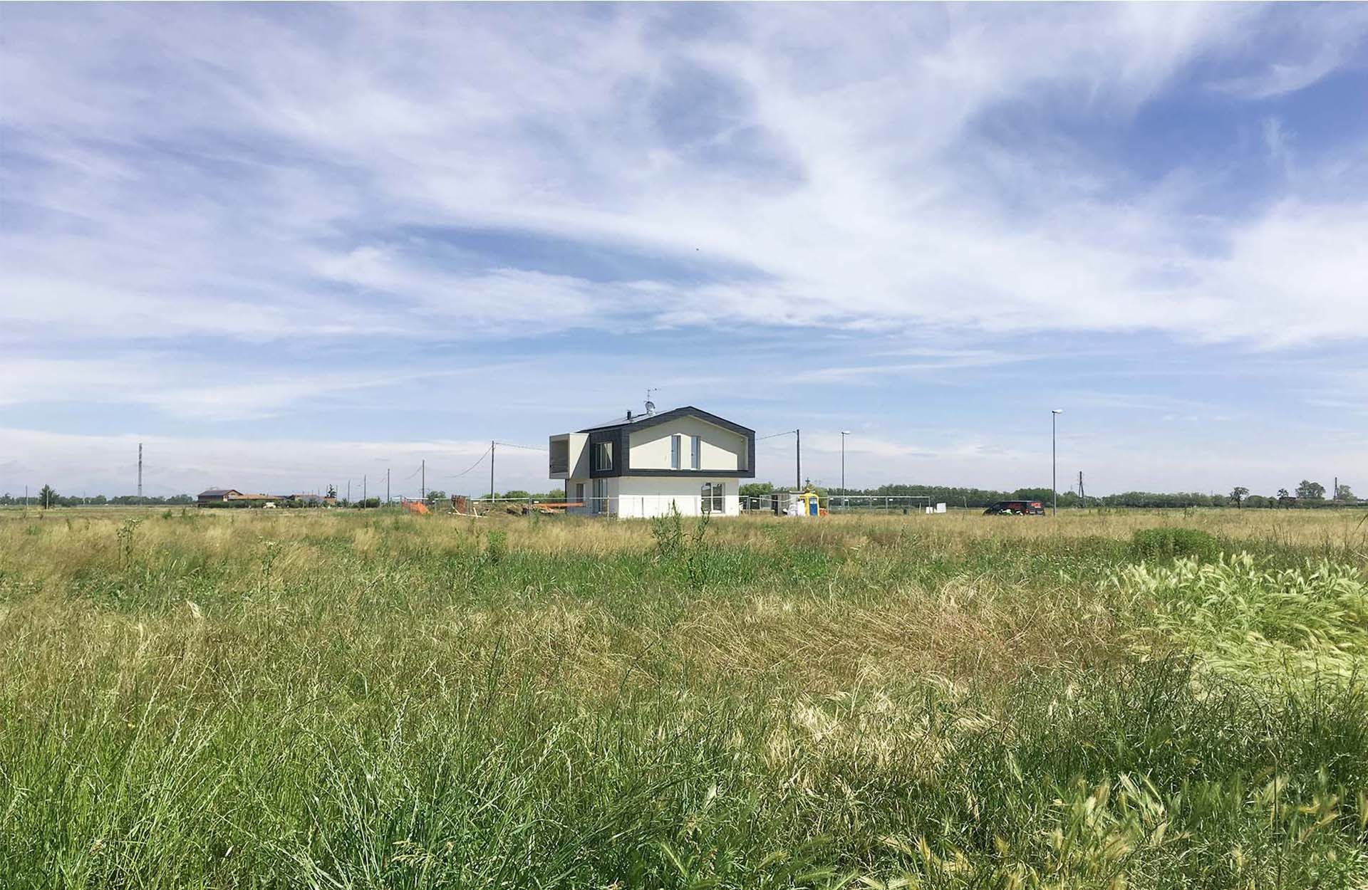 Una casa unifamiliare prefabbricata in legno immersa nelle risaie del novarese.
