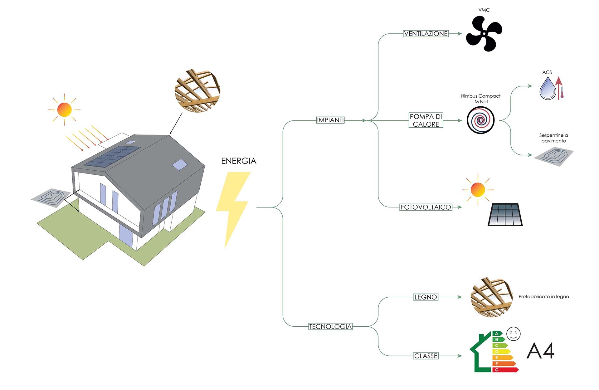 Realizzata in pannelli di legno xlam, una tecnologia che ha permesso di pensare ad una casa prefabbricabile e assemblabile a secco, la struttura è leggera e performante, veloce da realizzare come fosse la sovrapposizione di fogli di carta, sostenibile, ecologica e riciclabile.
