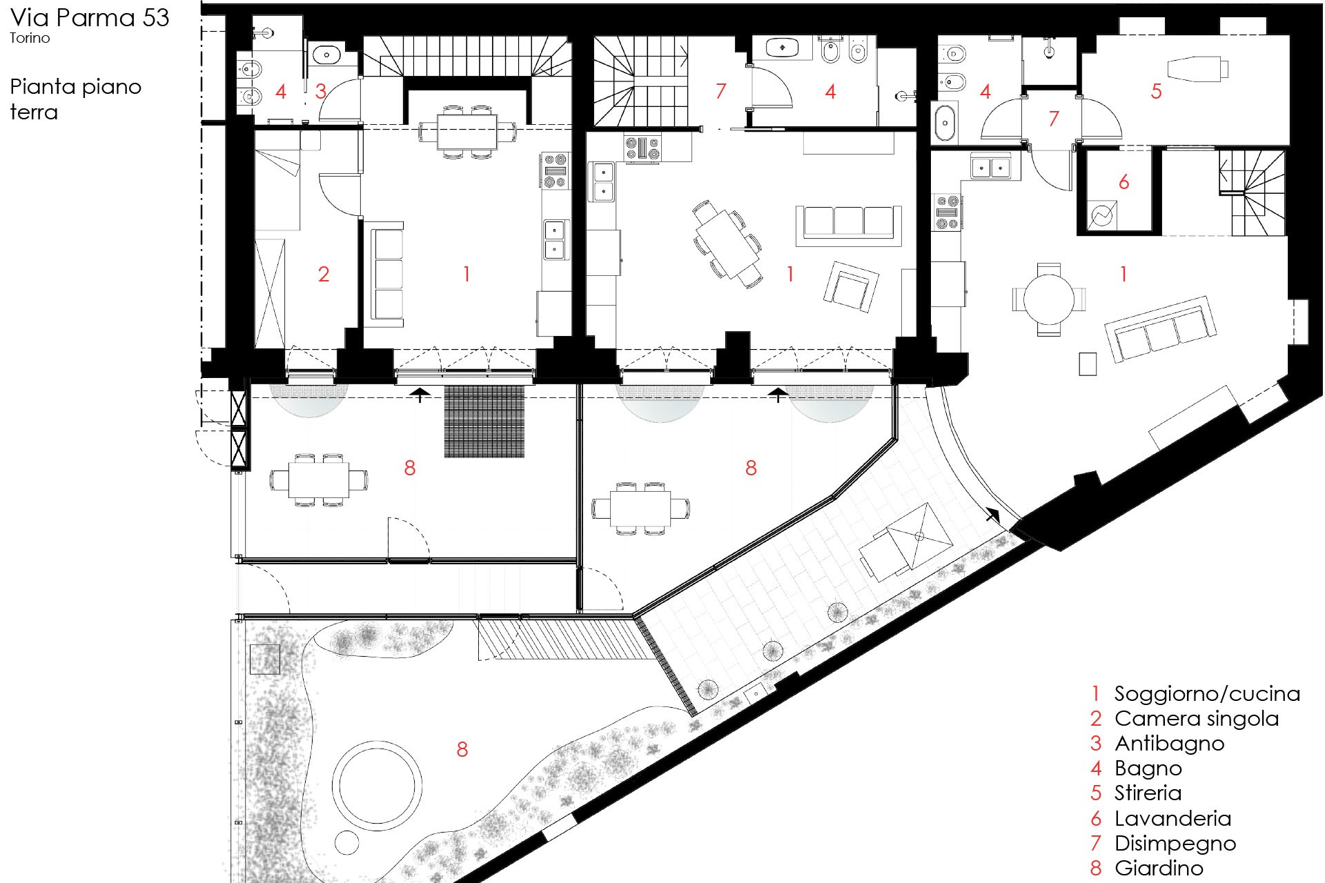 L’edificio è collocato nei pressi del Campus Einaudi, nell’isolato tra le vie Parma, Reggio, Modena e Messina. L’intervento prevede il cambio di destinazionè d’uso e il recupero a fini abitativi del sottotetto.